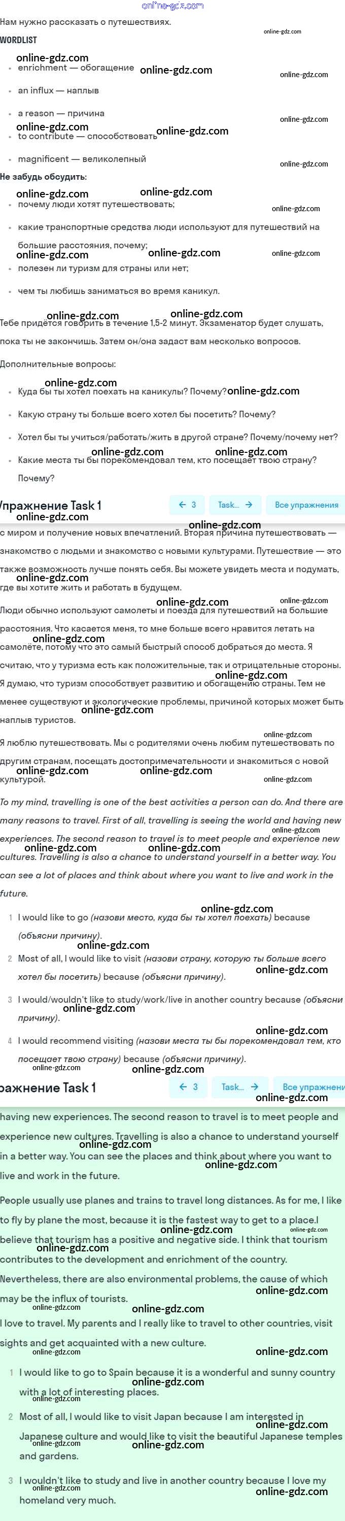 Готовые домашние задания по Английскому языку за 10 класс Рабочая тетрадь Баранова, Дули Starlight Углубленный уровень 2021 - Listening and speaking Module 3. Travel Time Task 1