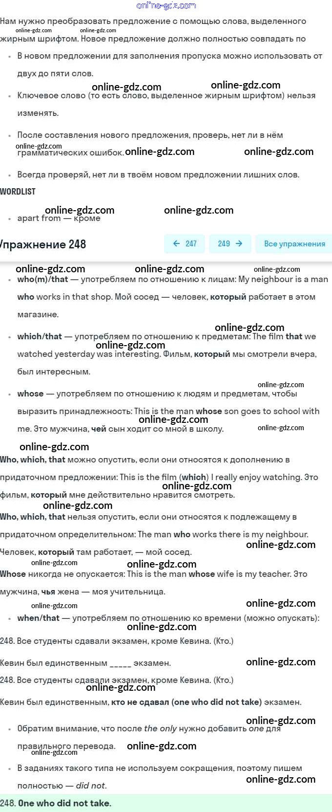Готовые домашние задания по Английскому языку за 10 класс Рабочая тетрадь Баранова, Дули Starlight Углубленный уровень 2021 - A Further practice section 248