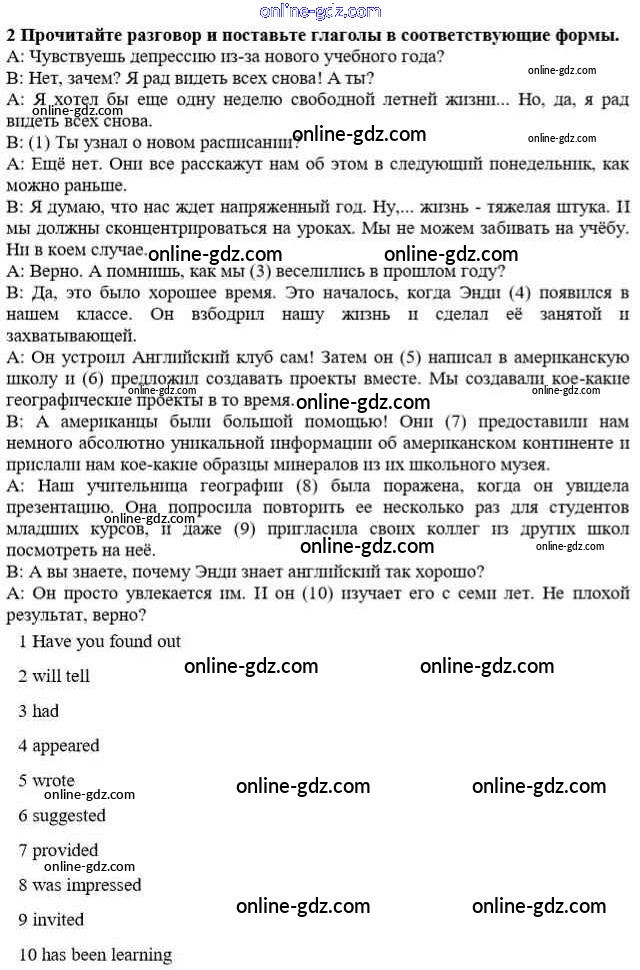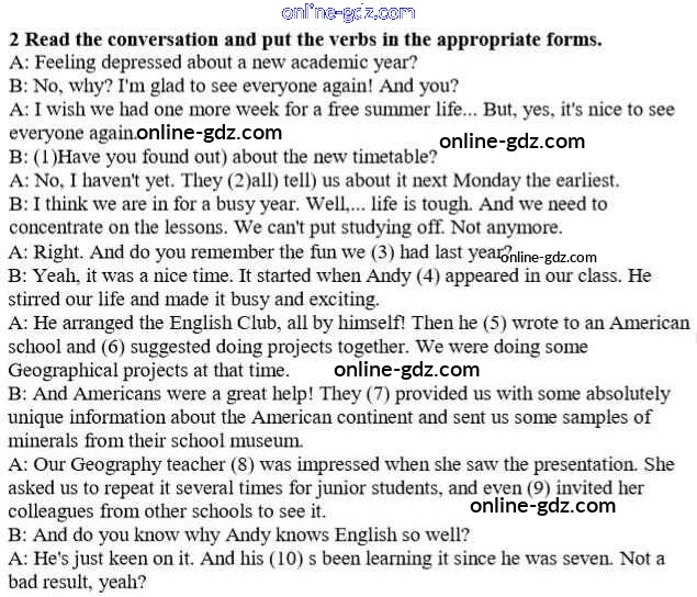 Готовые домашние задания по Английскому языку за 10 класс Рабочая тетрадь Биболетова, Бабушис Enjoy English 2013 - Section 1 Unit 1. Start a new (упражнения) 2