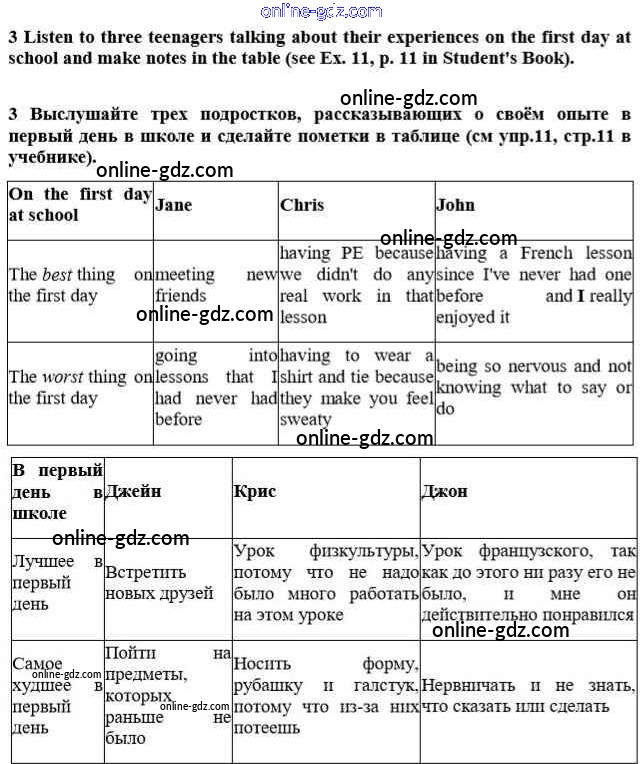 Готовые домашние задания по Английскому языку за 10 класс Рабочая тетрадь Биболетова, Бабушис Enjoy English 2013 - Section 1 Unit 1. Start a new (упражнения) 3