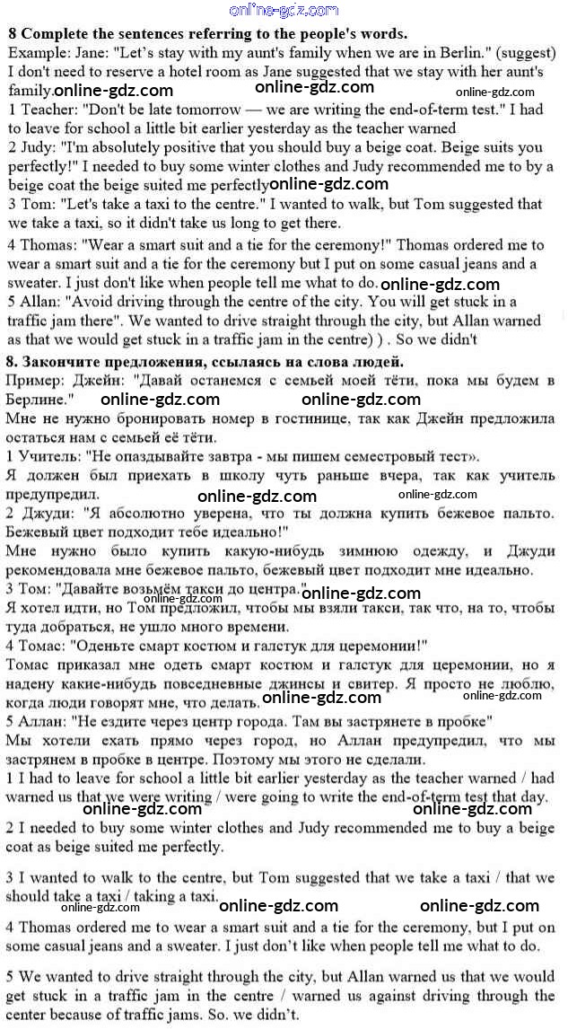 Готовые домашние задания по Английскому языку за 10 класс Рабочая тетрадь Биболетова, Бабушис Enjoy English 2013 - Section 2 Unit 1. Start a new (упражнения) 8