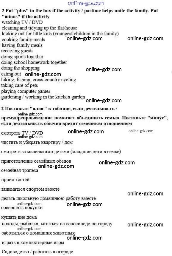 Готовые домашние задания по Английскому языку за 10 класс Рабочая тетрадь Биболетова, Бабушис Enjoy English 2013 - Section 2 Unit 2. Talking on family matters (упражнения) 2