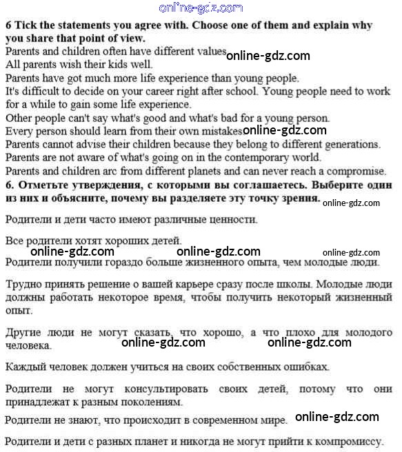 Готовые домашние задания по Английскому языку за 10 класс Рабочая тетрадь Биболетова, Бабушис Enjoy English 2013 - Section 4 Unit 2. Talking on family matters (упражнения) 6