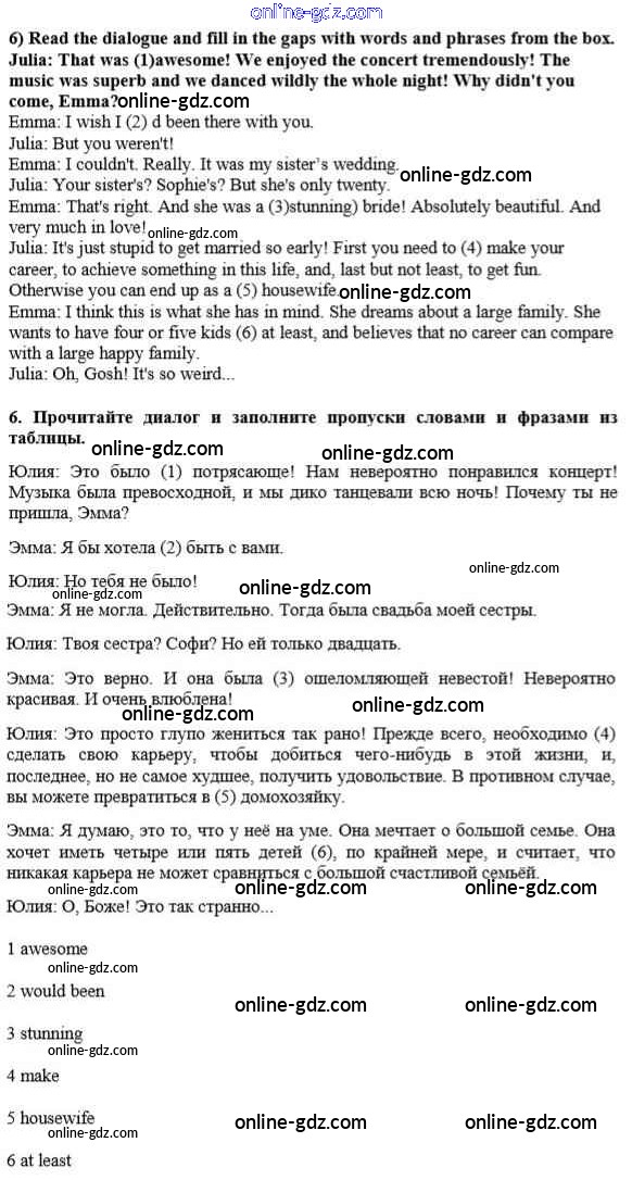 Готовые домашние задания по Английскому языку за 10 класс Рабочая тетрадь Биболетова, Бабушис Enjoy English 2013 - Section 5 Unit 2. Talking on family matters (упражнения) 6