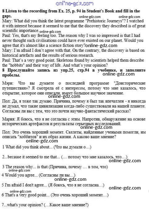 Готовые домашние задания по Английскому языку за 10 класс Рабочая тетрадь Биболетова, Бабушис Enjoy English 2013 - Section 1 Unit 3. Sivilisation and progress (упражнения) 8