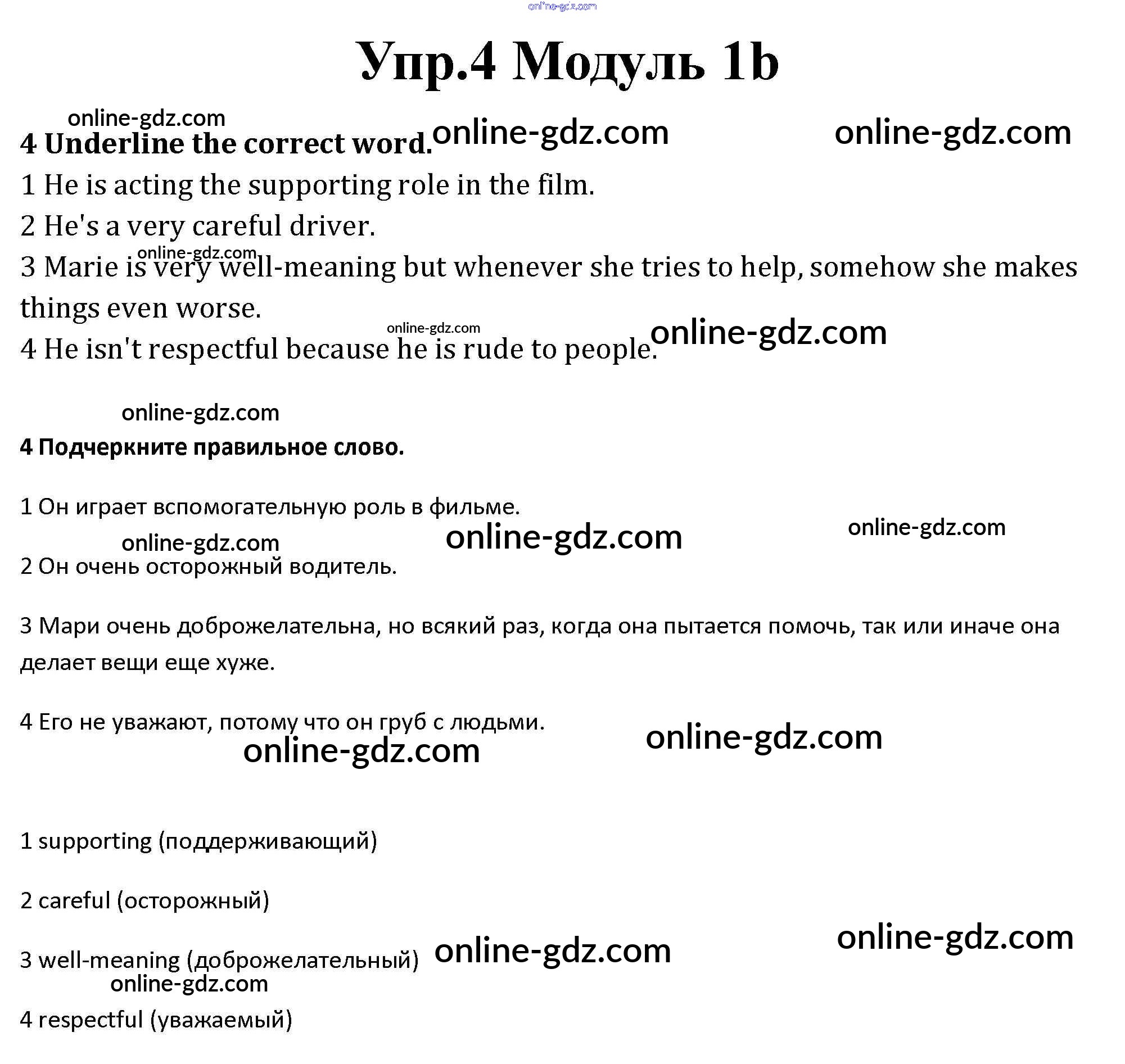 Готовые домашние задания по Английскому языку за 10 класс Рабочая тетрадь Афанасьева, Дули Spotlight Базовый уровень 2015 - Часть 1b Module 1 4