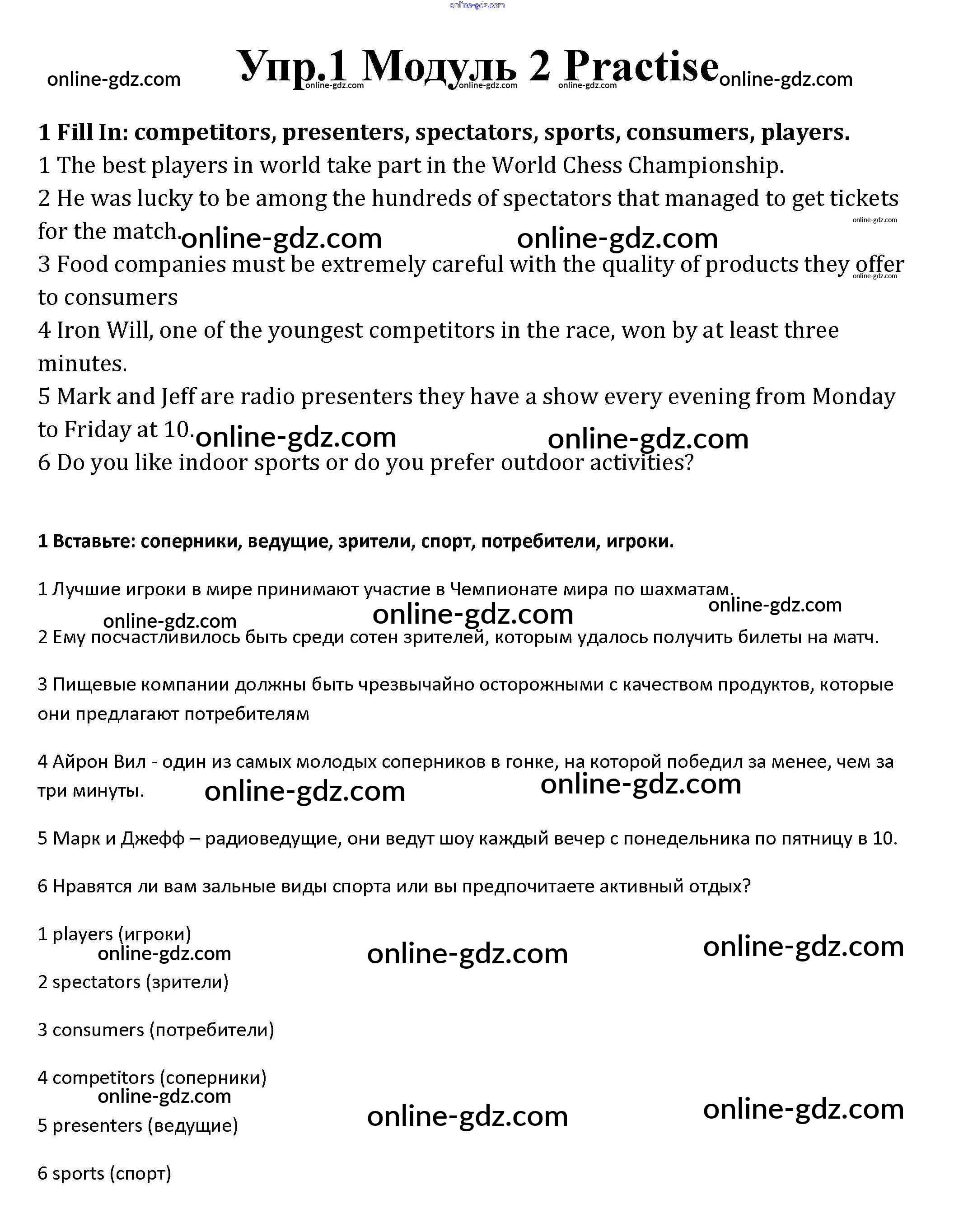Готовые домашние задания по Английскому языку за 10 класс Рабочая тетрадь Афанасьева, Дули Spotlight Базовый уровень 2015 - Vocabulary Practice Module 2 1