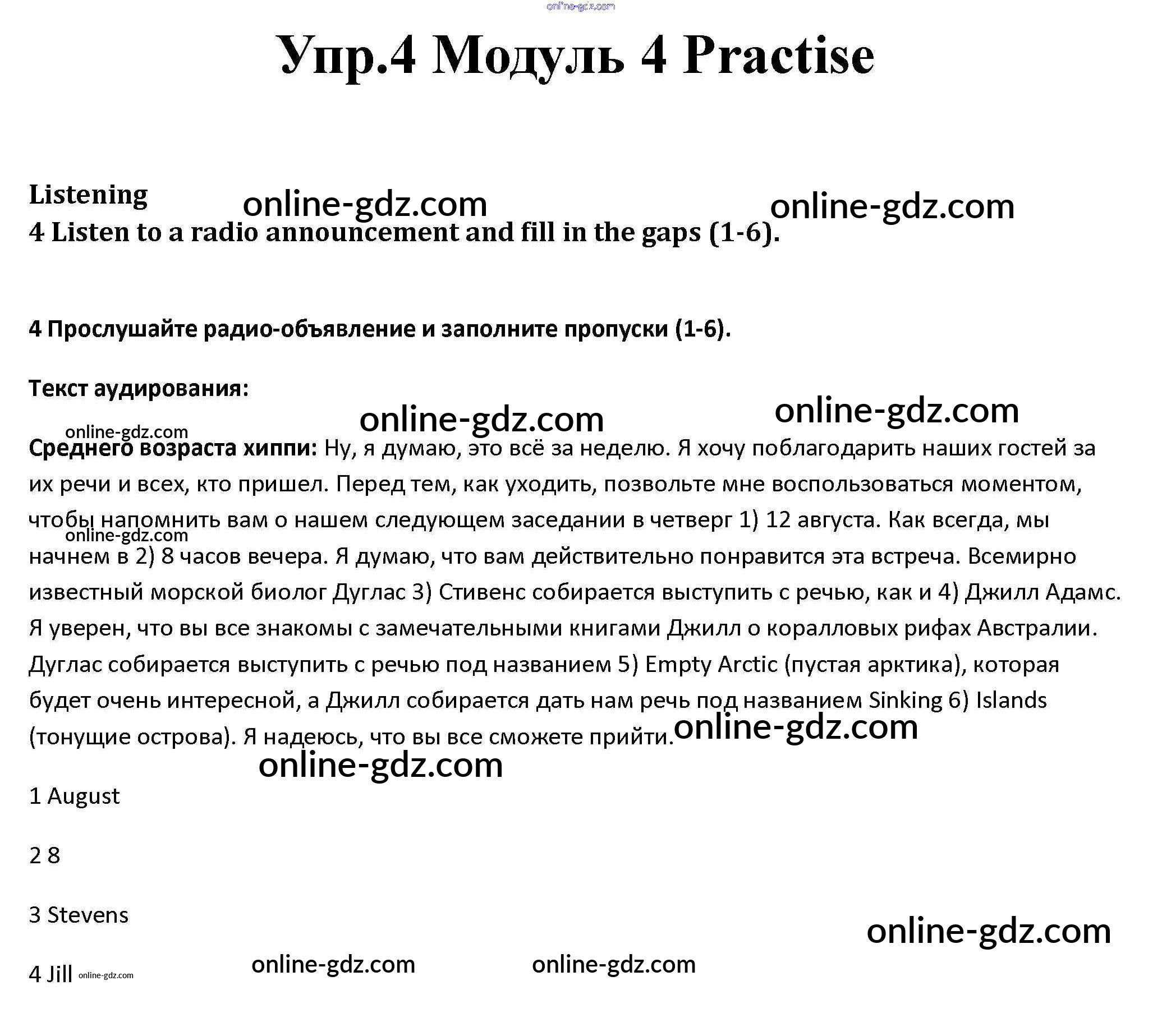 Готовые домашние задания по Английскому языку за 10 класс Рабочая тетрадь Афанасьева, Дули Spotlight Базовый уровень 2015 - Vocabulary Practice Module 4 4