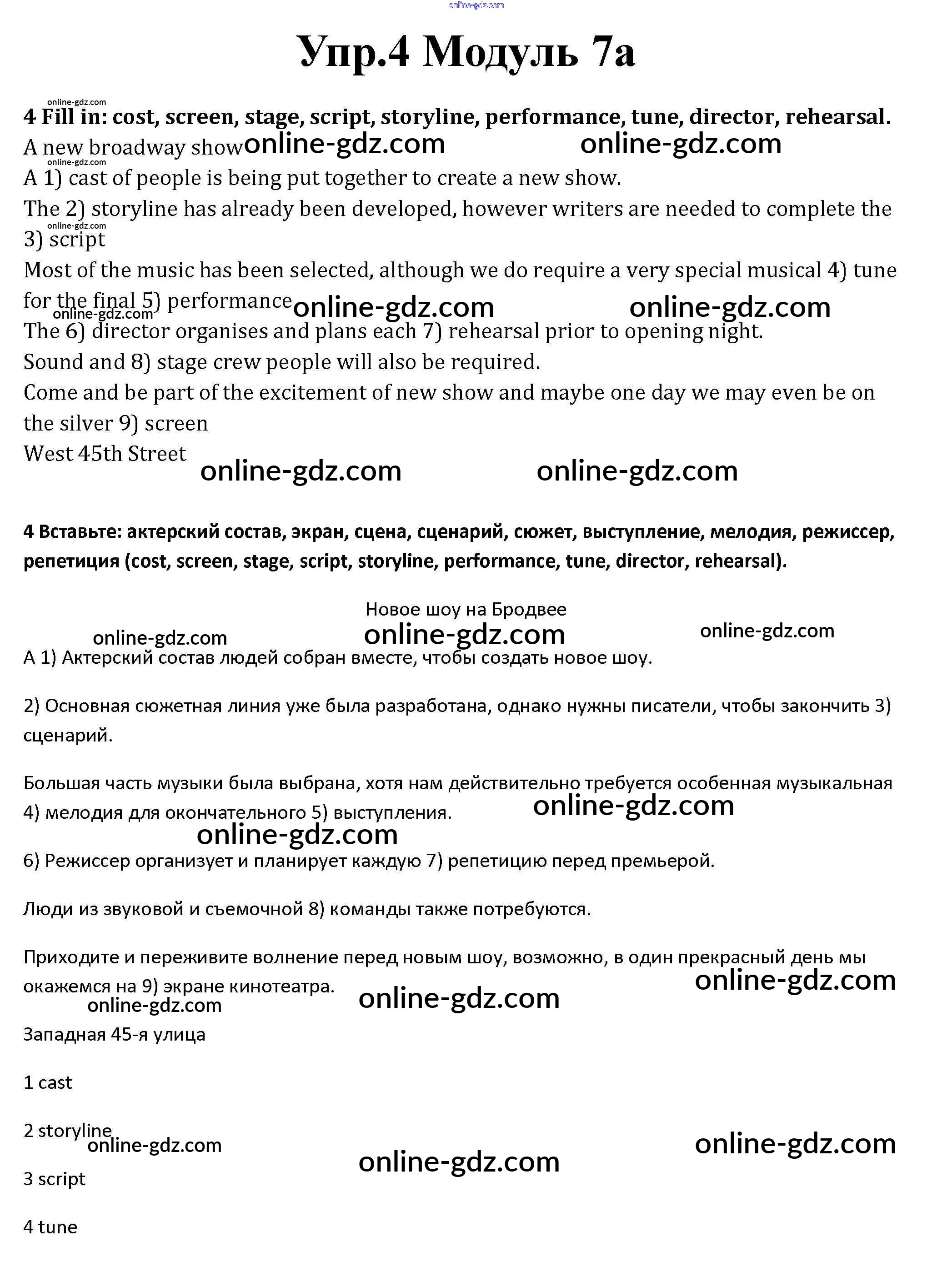 Готовые домашние задания по Английскому языку за 10 класс Рабочая тетрадь Афанасьева, Дули Spotlight Базовый уровень 2015 - Часть 7a Module 7 4