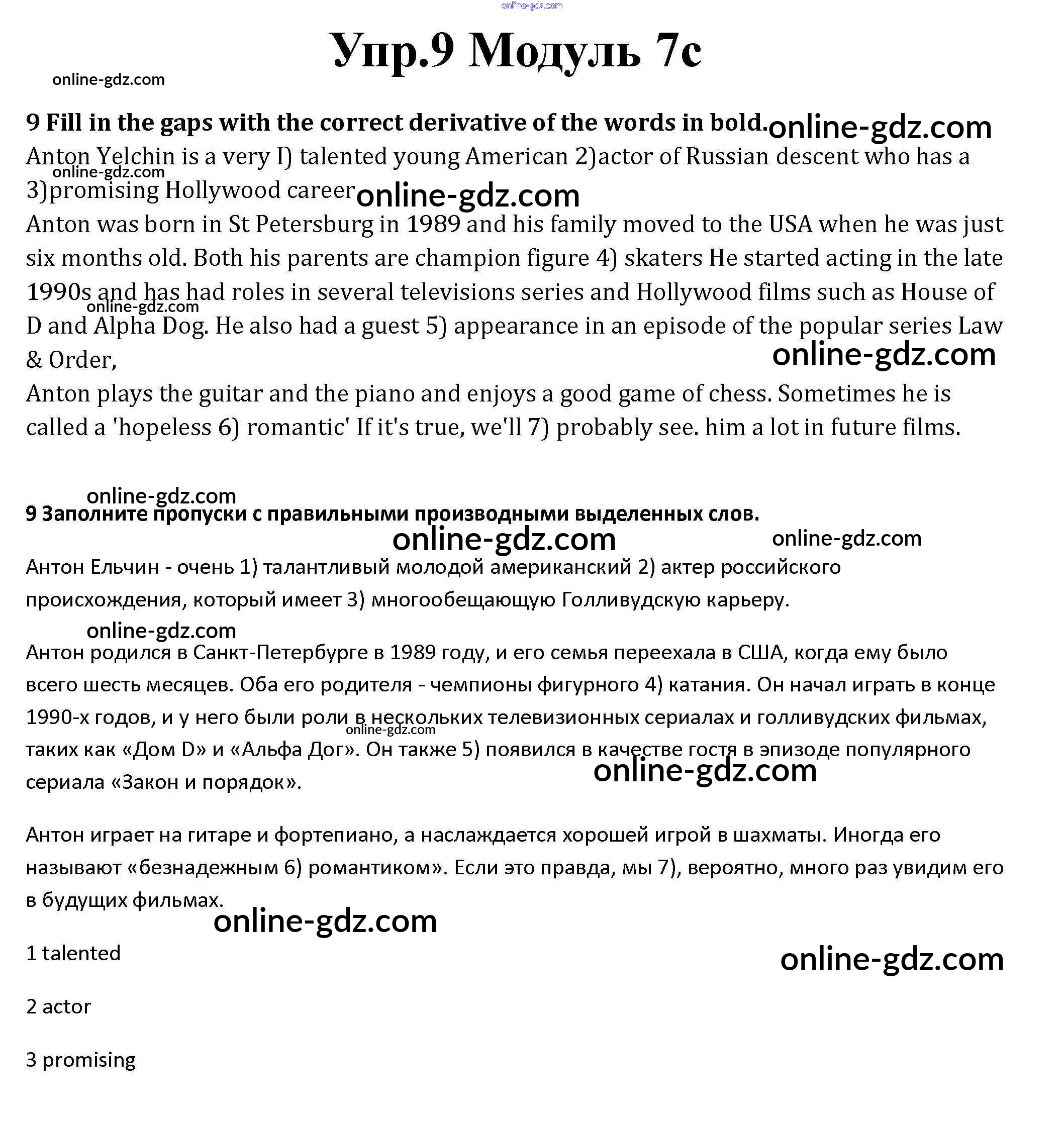 Готовые домашние задания по Английскому языку за 10 класс Рабочая тетрадь Афанасьева, Дули Spotlight Базовый уровень 2015 - Часть 7c Module 7 9