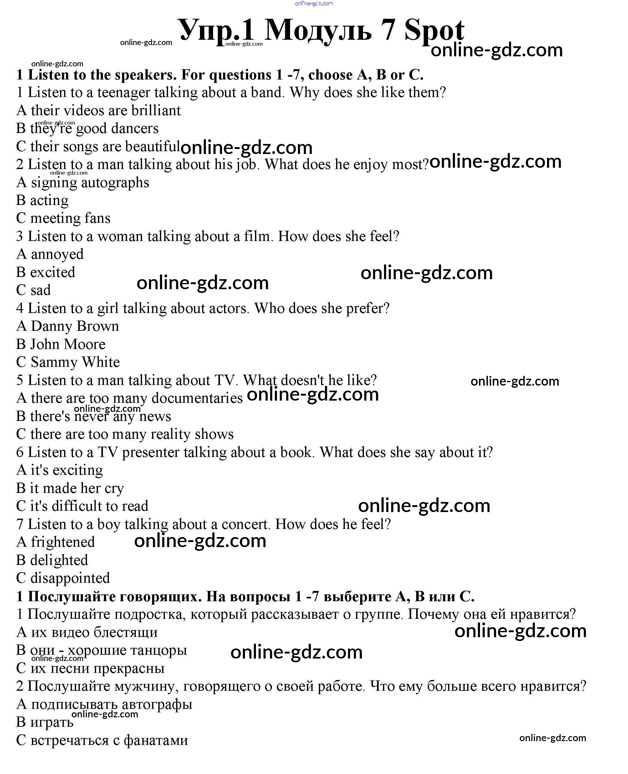 Готовые домашние задания по Английскому языку за 10 класс Рабочая тетрадь Афанасьева, Дули Spotlight Базовый уровень 2015 - Spotlight on Exams Module 7 1