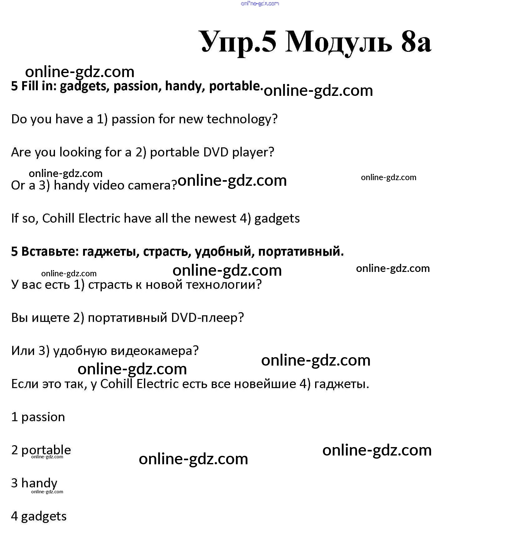 Готовые домашние задания по Английскому языку за 10 класс Рабочая тетрадь Афанасьева, Дули Spotlight Базовый уровень 2015 - Часть 8a Module 8 5