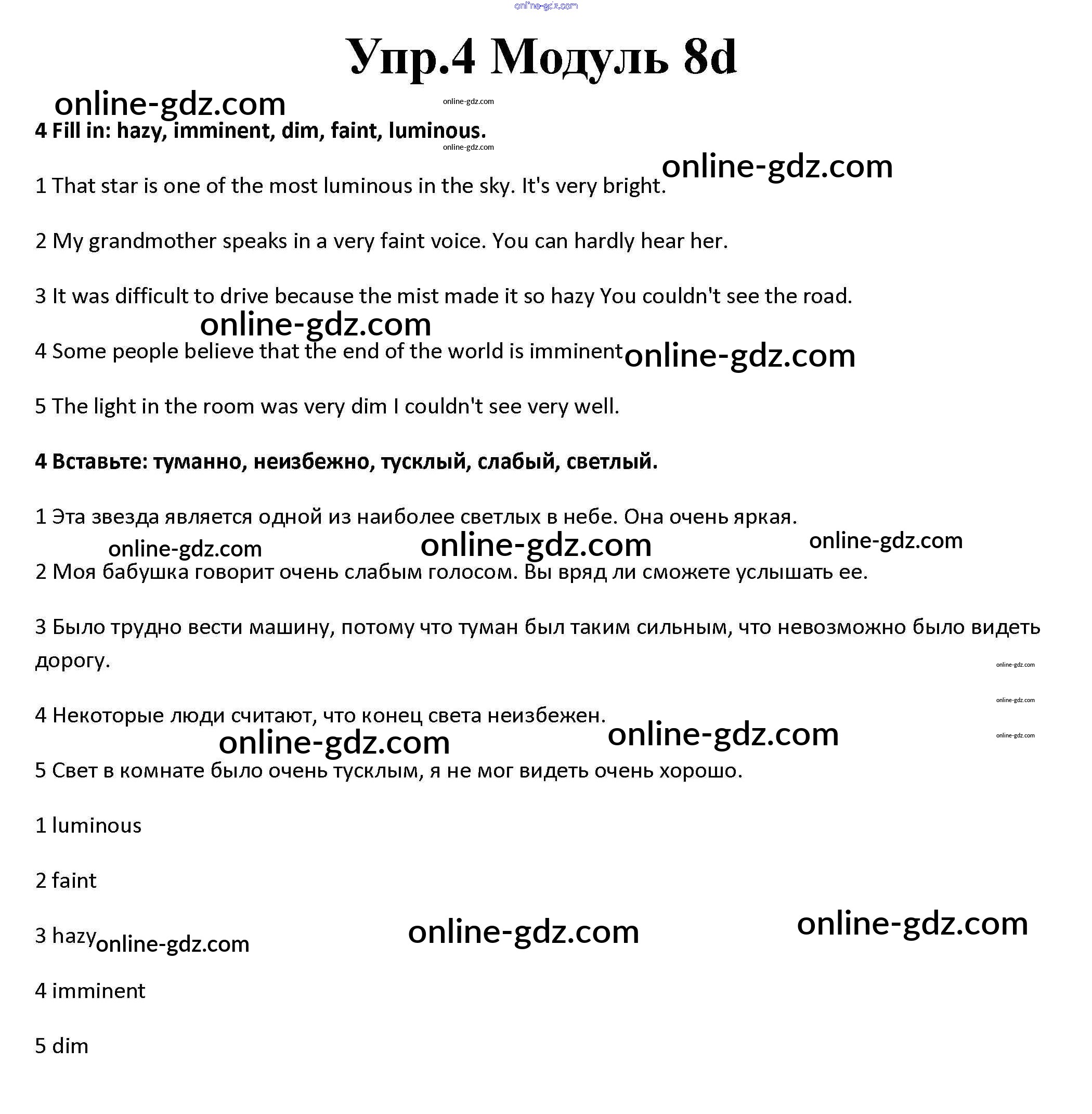 Готовые домашние задания по Английскому языку за 10 класс Рабочая тетрадь Афанасьева, Дули Spotlight Базовый уровень 2015 - Часть 8d Module 8 4