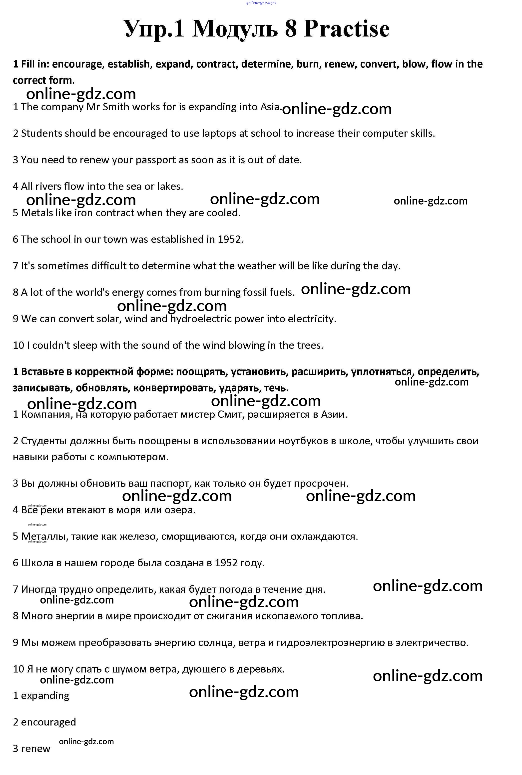 Готовые домашние задания по Английскому языку за 10 класс Рабочая тетрадь Афанасьева, Дули Spotlight Базовый уровень 2015 - Vocabulary Practice Module 8 1