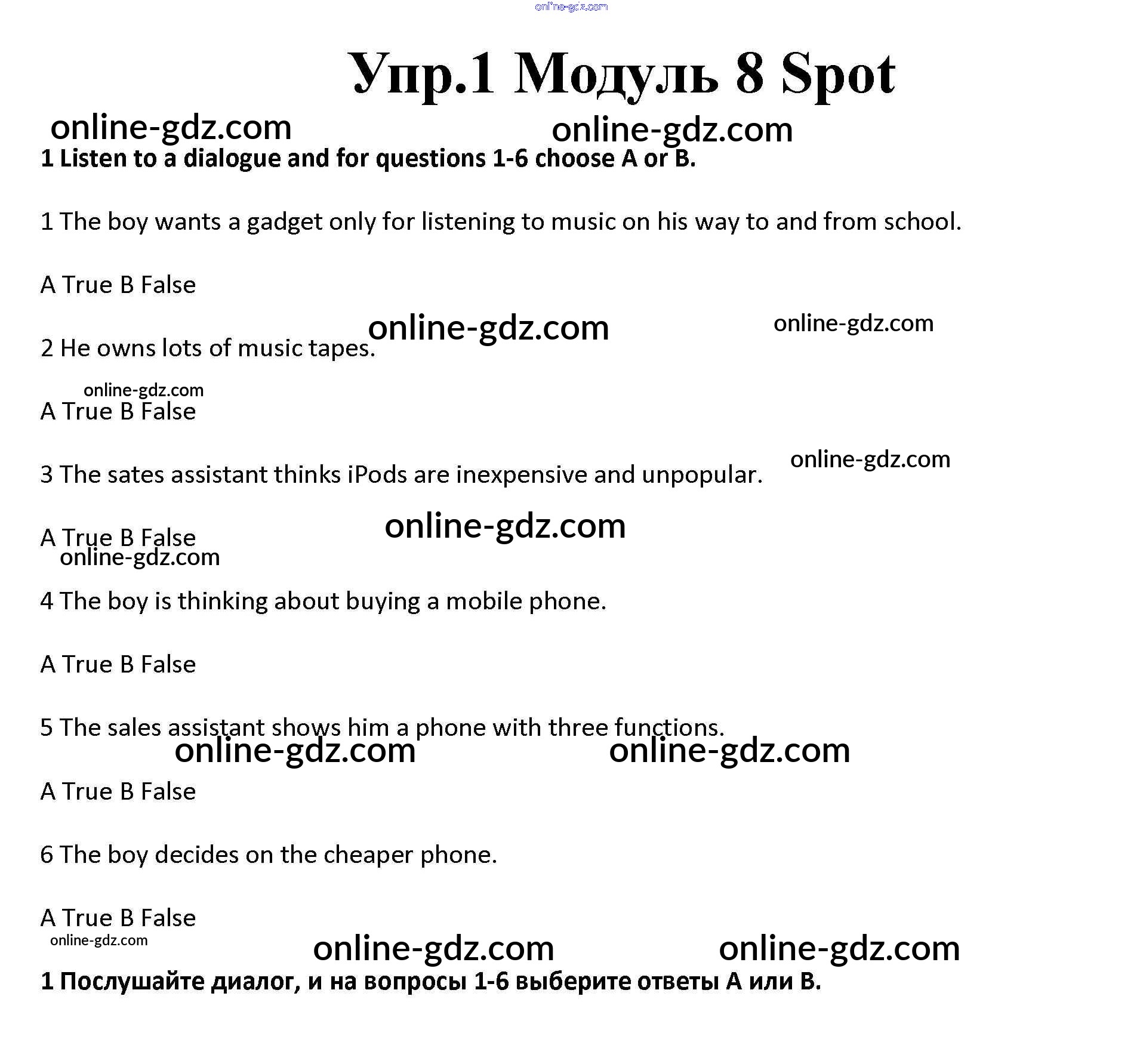 Готовые домашние задания по Английскому языку за 10 класс Рабочая тетрадь Афанасьева, Дули Spotlight Базовый уровень 2015 - Spotlight on Exams Module 8 1