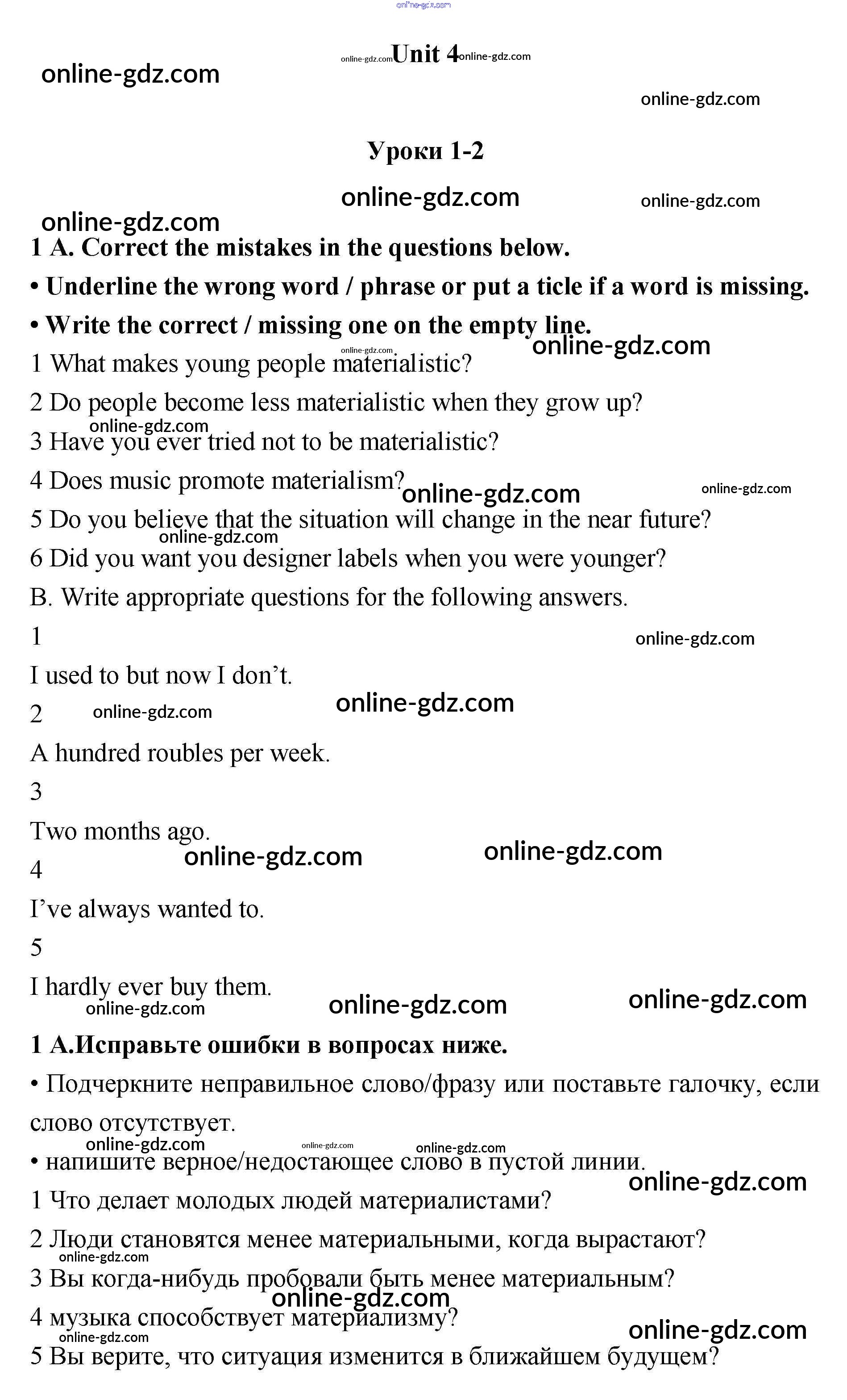 Готовые домашние задания по Английскому языку за 10 класс Рабочая тетрадь Гроза, Дворецкая New Millennium 2013 - Уроки 1-2 Unit 4. The root of all evil? 1