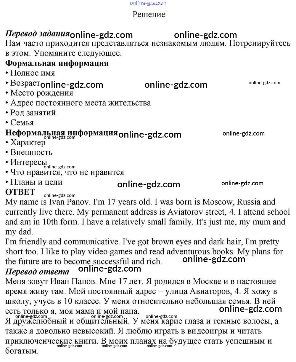 Готовые домашние задания по Английскому языку за 10 класс Учебник Афанасьева, Михеева Rainbow Базовый уровень 2016 - Step 1 Unit 1. In Harmony with Yourself 1