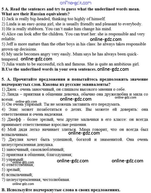 Готовые домашние задания по Английскому языку за 10 класс Учебник Афанасьева, Михеева Rainbow Базовый уровень 2016 - Step 1 Unit 1. In Harmony with Yourself 5