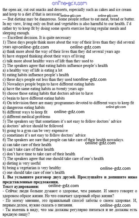 Готовые домашние задания по Английскому языку за 10 класс Учебник Афанасьева, Михеева Rainbow Базовый уровень 2016 - Step 10 Unit 1. In Harmony with Yourself 1