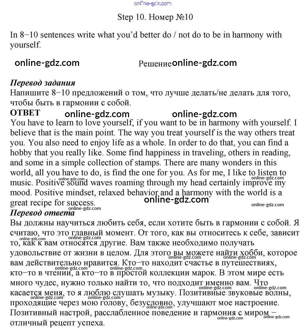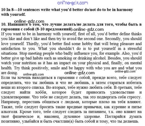 Готовые домашние задания по Английскому языку за 10 класс Учебник Афанасьева, Михеева Rainbow Базовый уровень 2016 - Step 10 Unit 1. In Harmony with Yourself 10