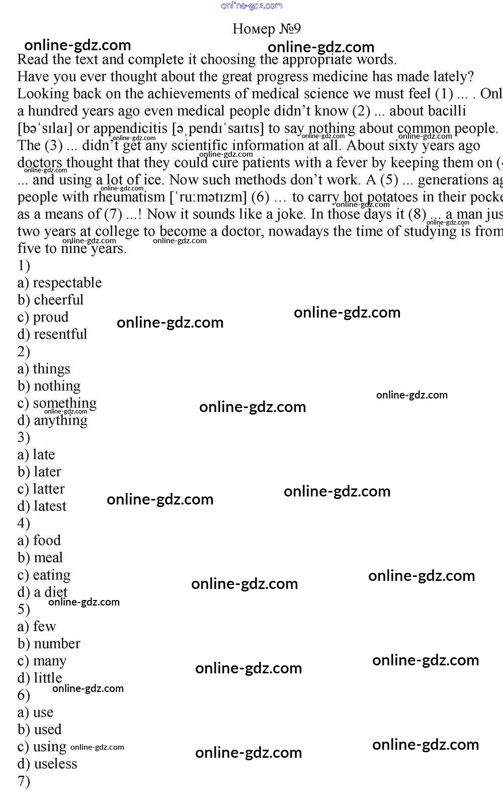 Готовые домашние задания по Английскому языку за 10 класс Учебник Афанасьева, Михеева Rainbow Базовый уровень 2016 - Step 10 Unit 1. In Harmony with Yourself 9