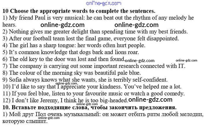 Готовые домашние задания по Английскому языку за 10 класс Учебник Афанасьева, Михеева Rainbow Базовый уровень 2016 - Step 11 Unit 1. In Harmony with Yourself 10