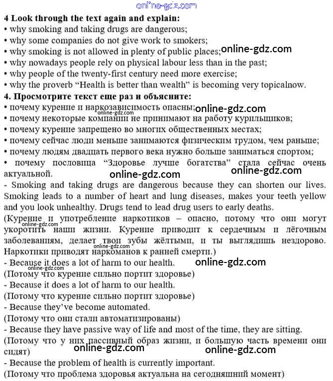 Готовые домашние задания по Английскому языку за 10 класс Учебник Афанасьева, Михеева Rainbow Базовый уровень 2016 - Step 11 Unit 1. In Harmony with Yourself 4