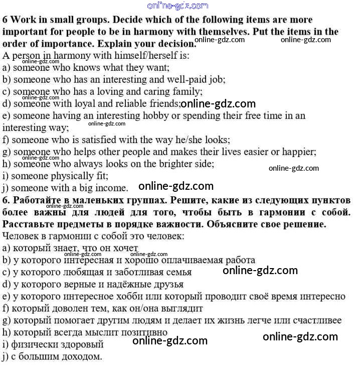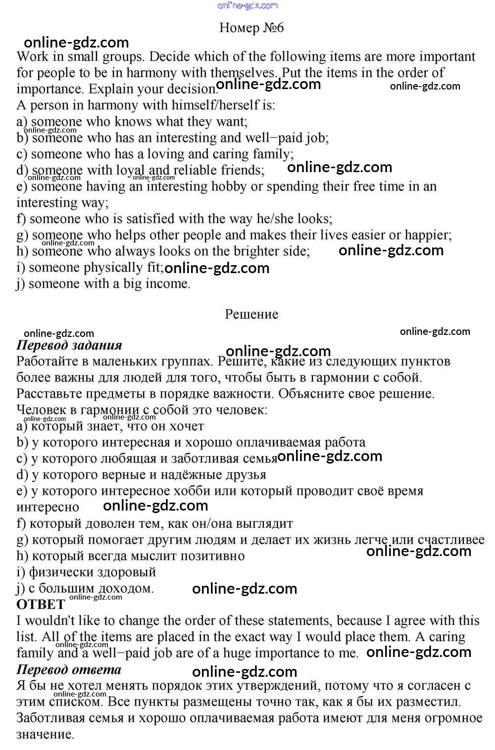 Готовые домашние задания по Английскому языку за 10 класс Учебник Афанасьева, Михеева Rainbow Базовый уровень 2016 - Step 11 Unit 1. In Harmony with Yourself 6