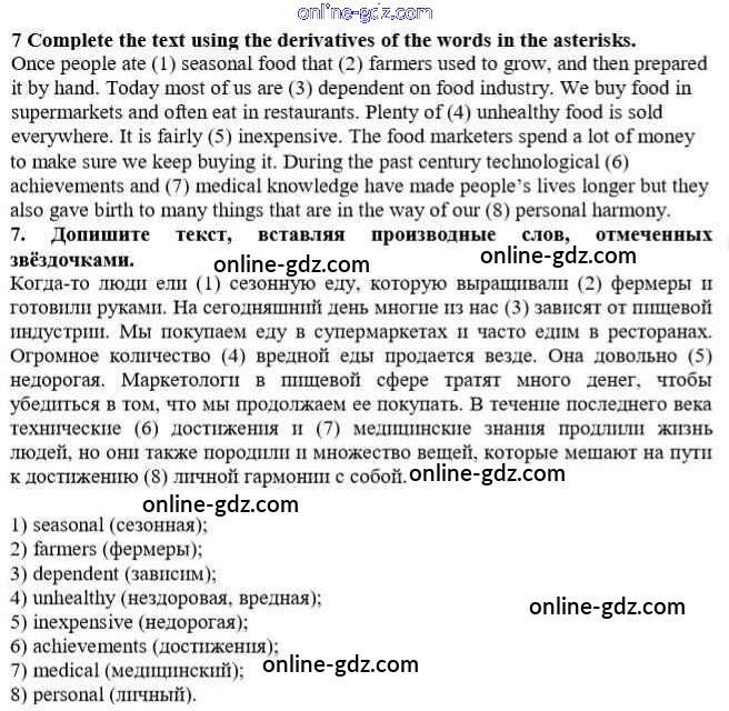 Готовые домашние задания по Английскому языку за 10 класс Учебник Афанасьева, Михеева Rainbow Базовый уровень 2016 - Step 11 Unit 1. In Harmony with Yourself 7