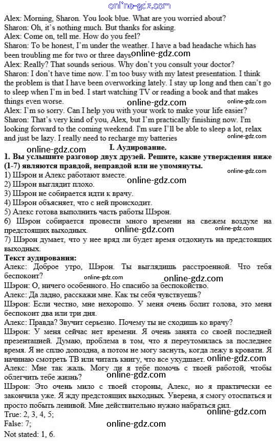 Готовые домашние задания по Английскому языку за 10 класс Учебник Афанасьева, Михеева Rainbow Базовый уровень 2016 - Step 12 Unit 1. In Harmony with Yourself 1