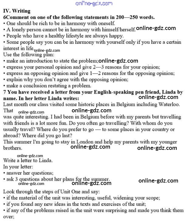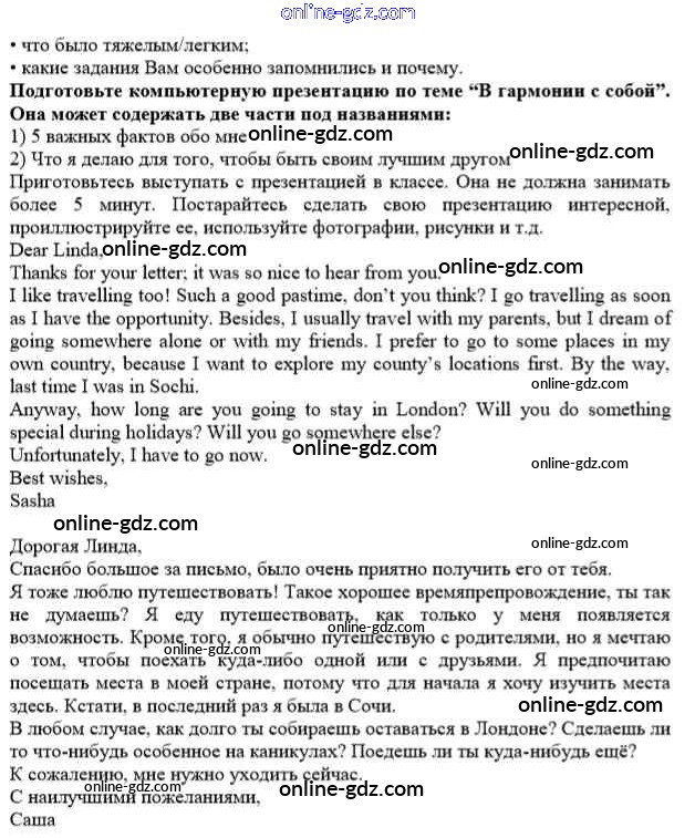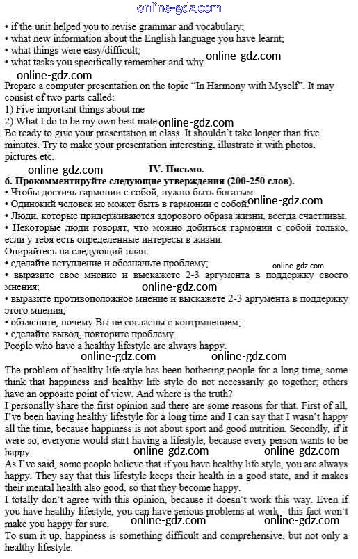 Готовые домашние задания по Английскому языку за 10 класс Учебник Афанасьева, Михеева Rainbow Базовый уровень 2016 - Step 12 Unit 1. In Harmony with Yourself 4