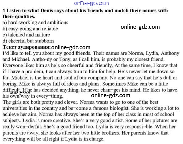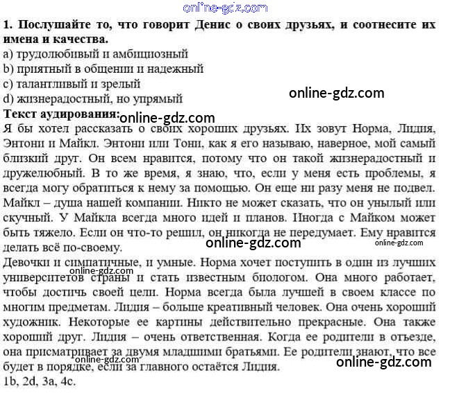 Готовые домашние задания по Английскому языку за 10 класс Учебник Афанасьева, Михеева Rainbow Базовый уровень 2016 - Step 2 Unit 1. In Harmony with Yourself 1