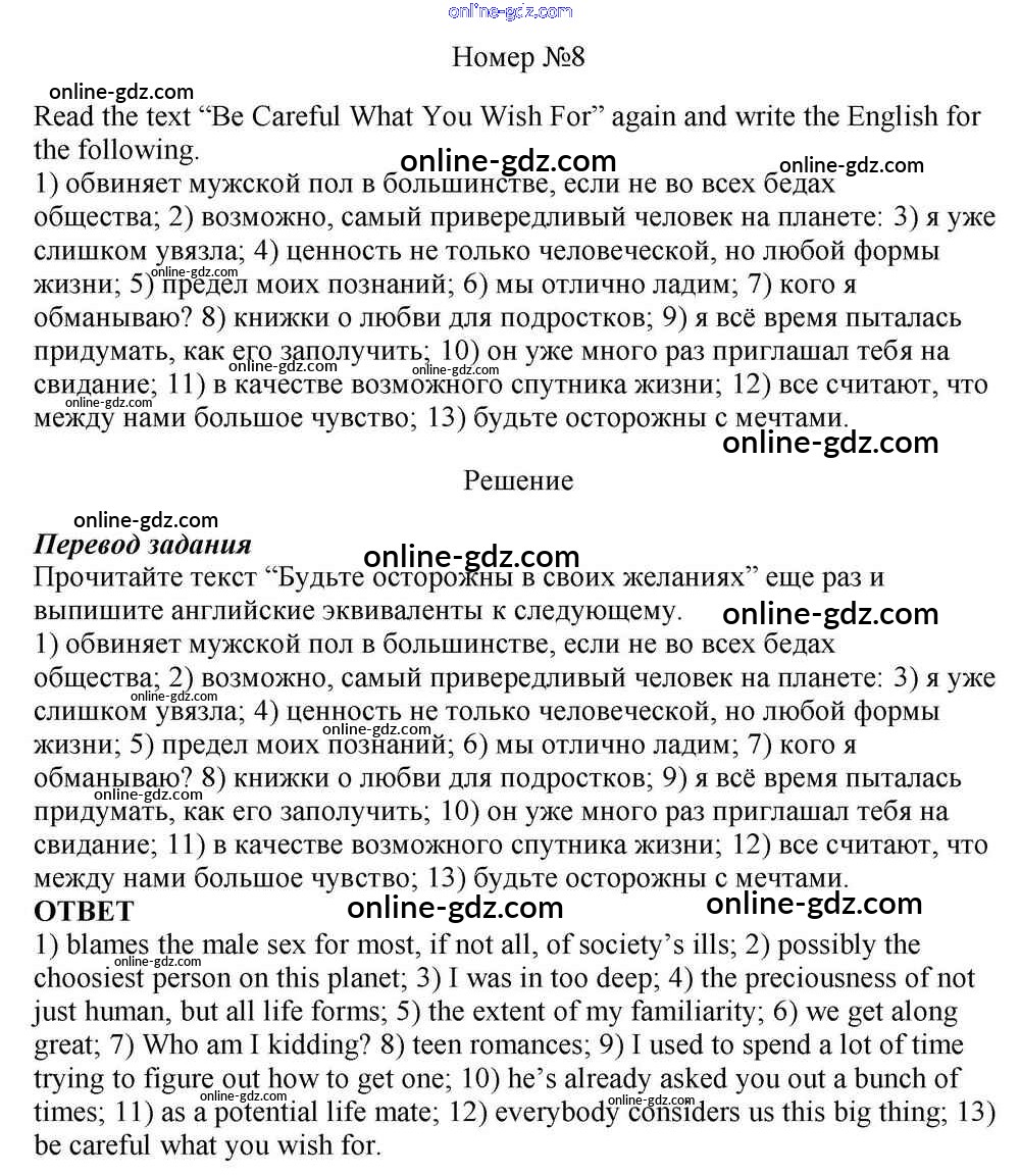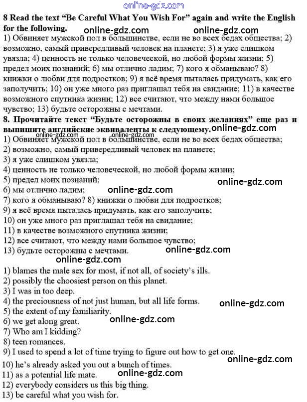 Готовые домашние задания по Английскому языку за 10 класс Учебник Афанасьева, Михеева Rainbow Базовый уровень 2016 - Step 3 Unit 1. In Harmony with Yourself 8
