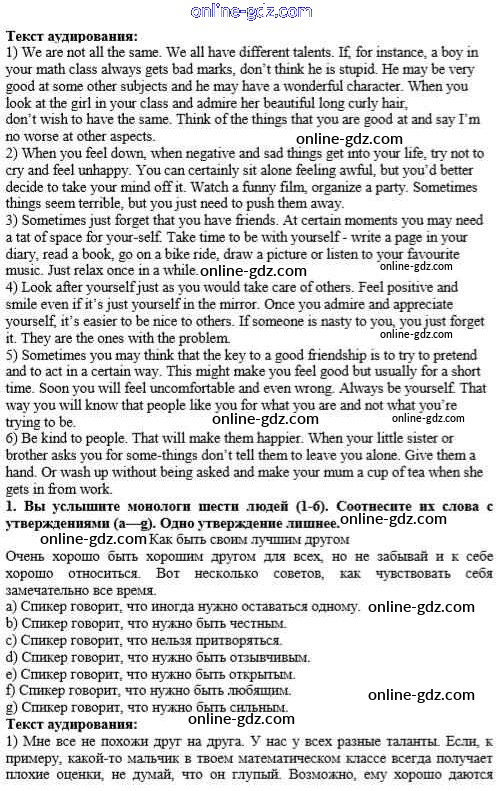 Готовые домашние задания по Английскому языку за 10 класс Учебник Афанасьева, Михеева Rainbow Базовый уровень 2016 - Step 4 Unit 1. In Harmony with Yourself 1
