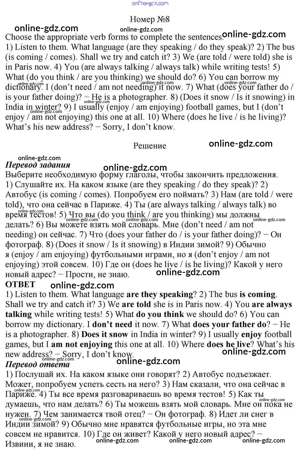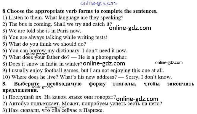 Готовые домашние задания по Английскому языку за 10 класс Учебник Афанасьева, Михеева Rainbow Базовый уровень 2016 - Step 4 Unit 1. In Harmony with Yourself 8
