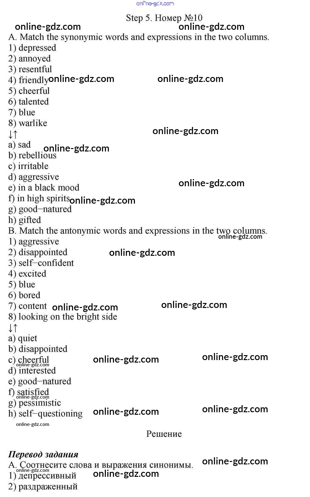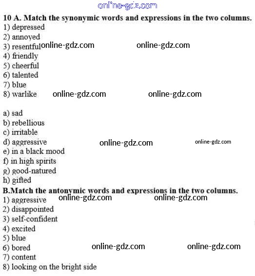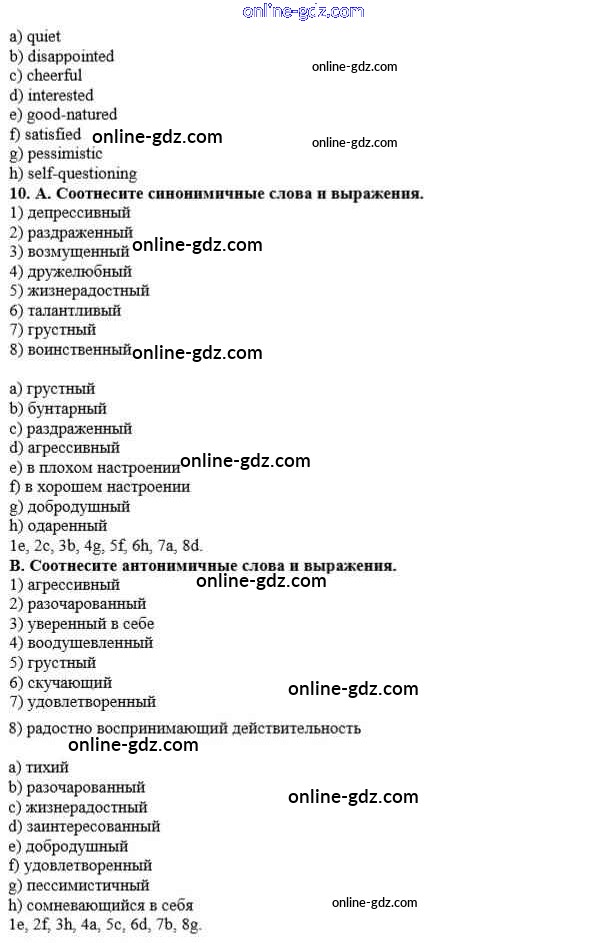 Готовые домашние задания по Английскому языку за 10 класс Учебник Афанасьева, Михеева Rainbow Базовый уровень 2016 - Step 5 Unit 1. In Harmony with Yourself 10