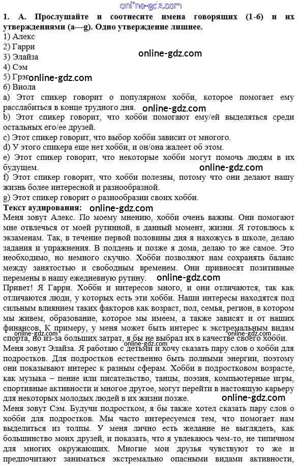 Готовые домашние задания по Английскому языку за 10 класс Учебник Афанасьева, Михеева Rainbow Базовый уровень 2016 - Step 7 Unit 1. In Harmony with Yourself 1