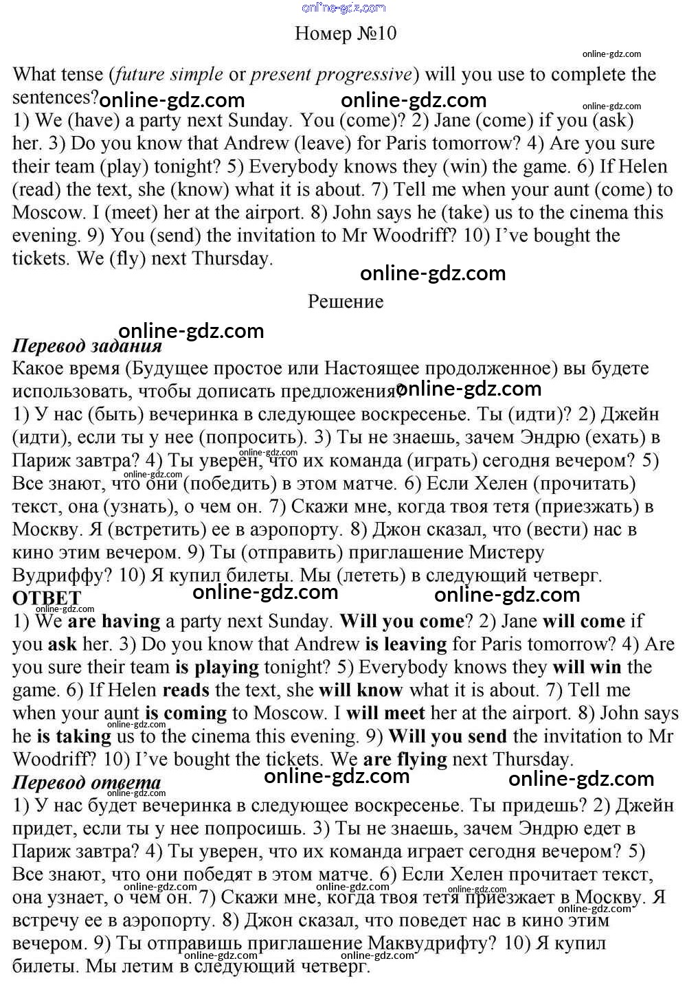 Готовые домашние задания по Английскому языку за 10 класс Учебник Афанасьева, Михеева Rainbow Базовый уровень 2016 - Step 7 Unit 1. In Harmony with Yourself 10