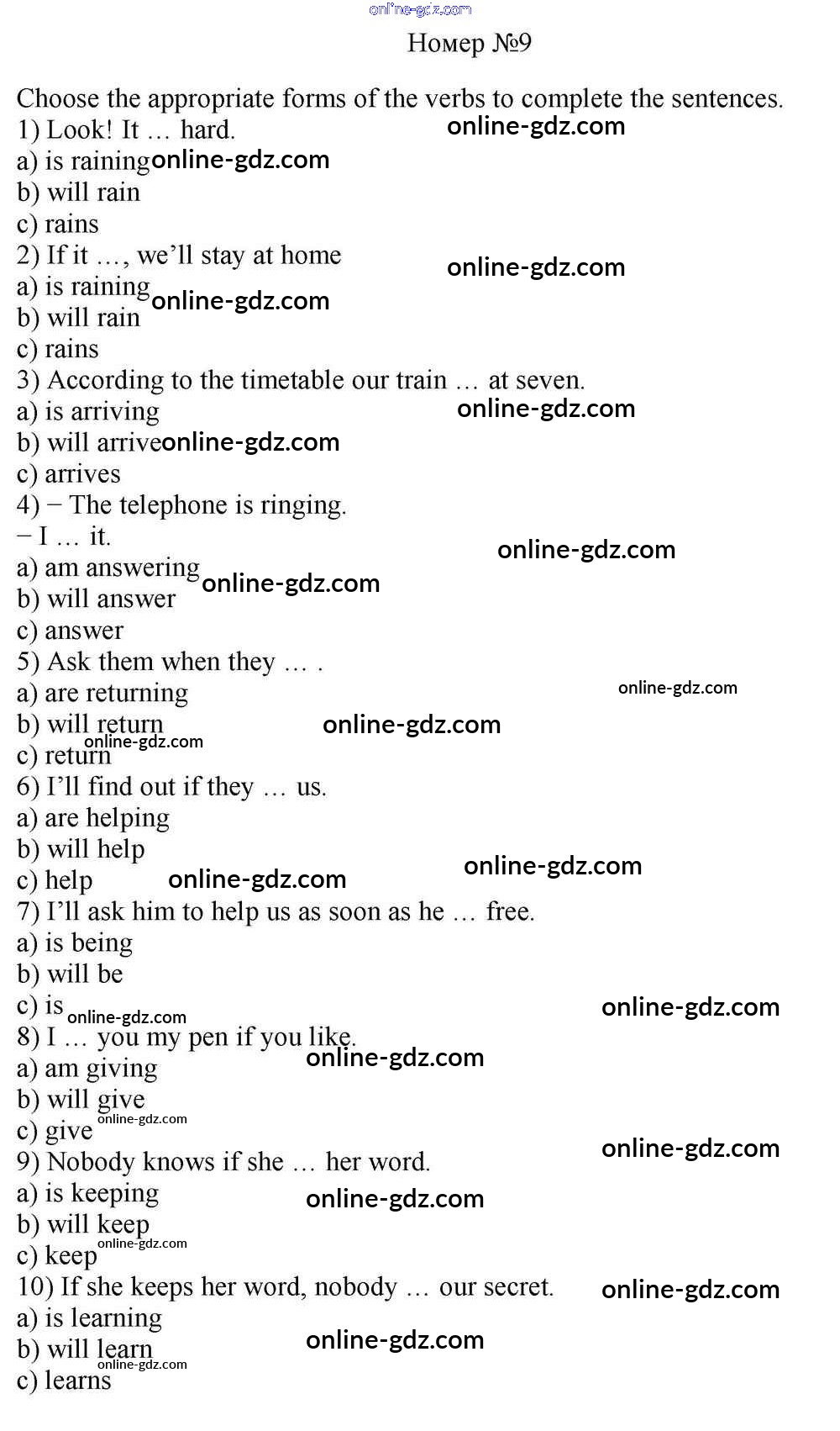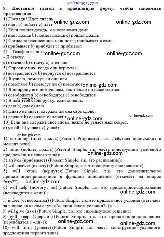 Готовые домашние задания по Английскому языку за 10 класс Учебник Афанасьева, Михеева Rainbow Базовый уровень 2016 - Step 7 Unit 1. In Harmony with Yourself 9