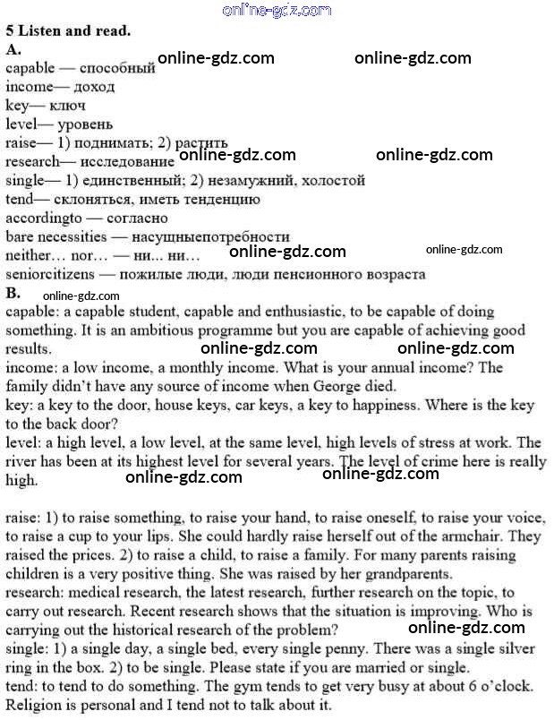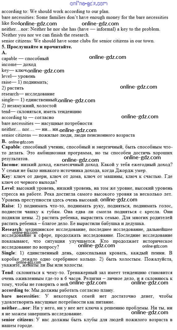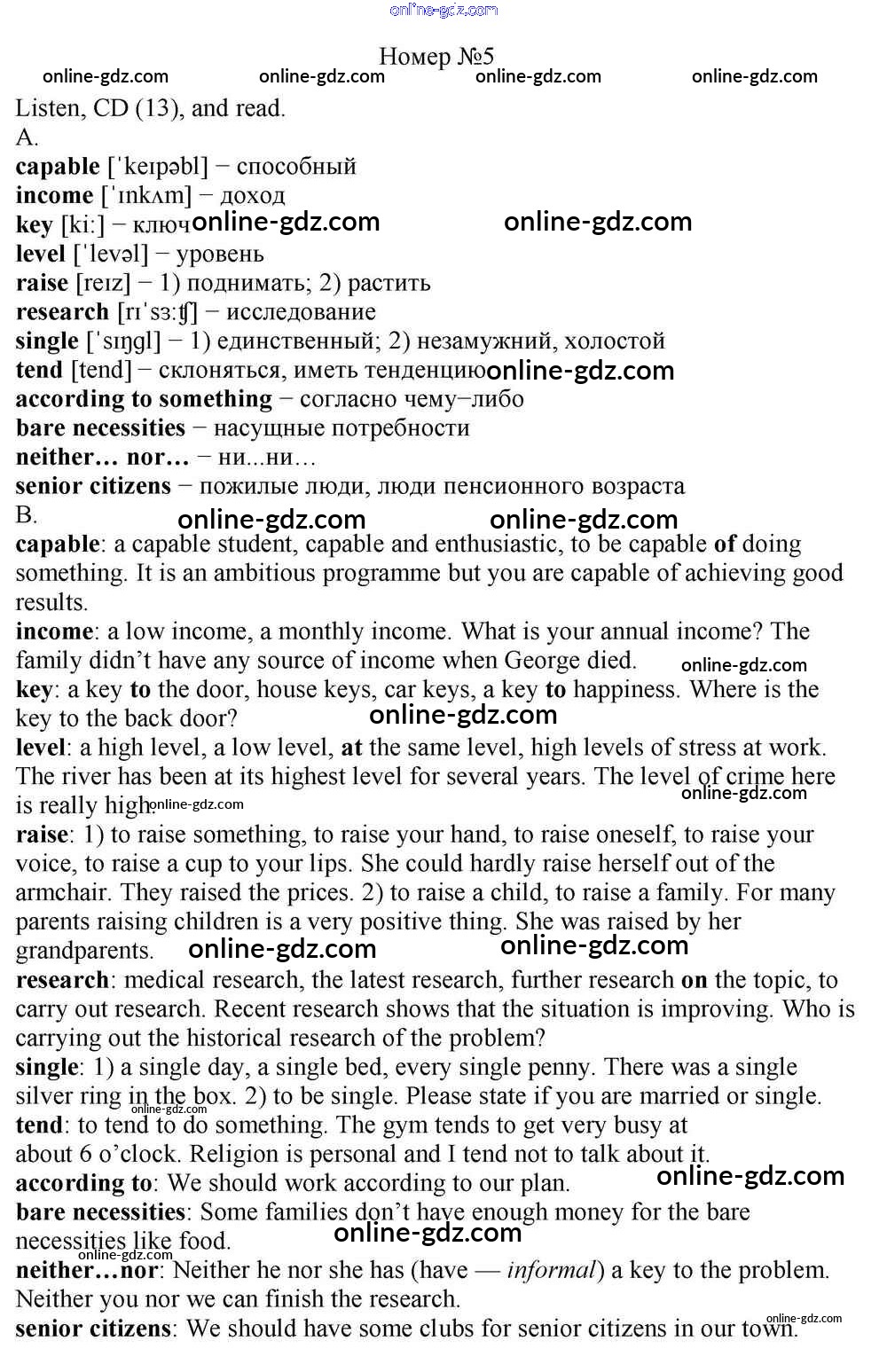 Готовые домашние задания по Английскому языку за 10 класс Учебник Афанасьева, Михеева Rainbow Базовый уровень 2016 - Step 8 Unit 1. In Harmony with Yourself 5