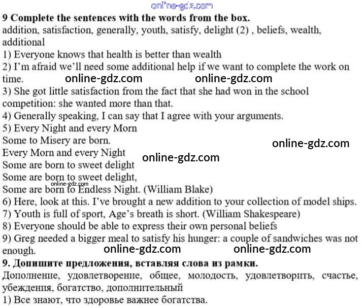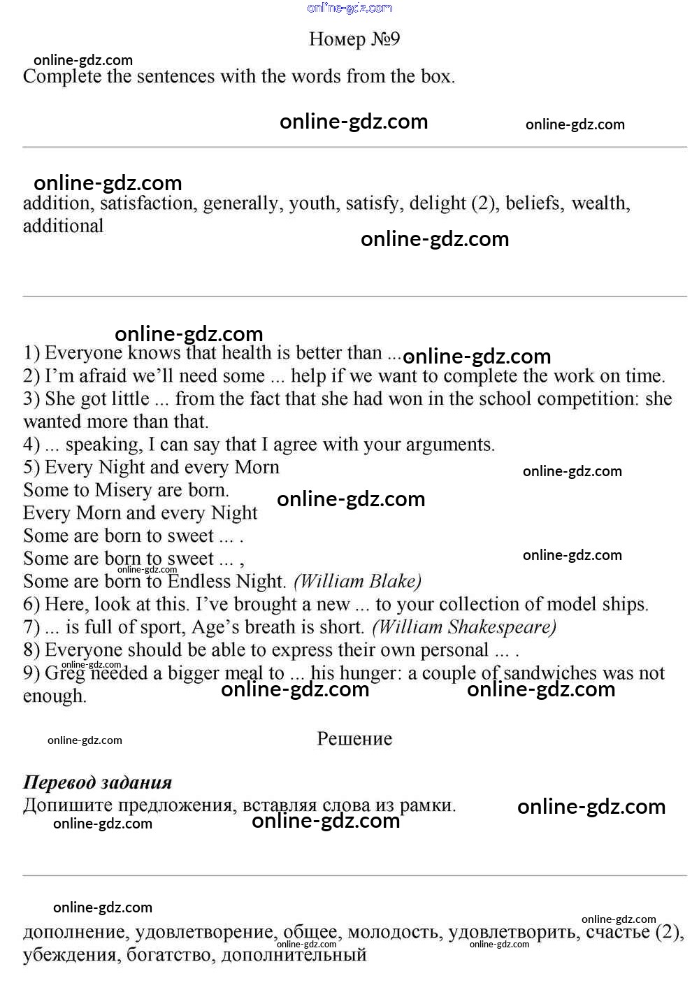 Готовые домашние задания по Английскому языку за 10 класс Учебник Афанасьева, Михеева Rainbow Базовый уровень 2016 - Step 9 Unit 1. In Harmony with Yourself 9