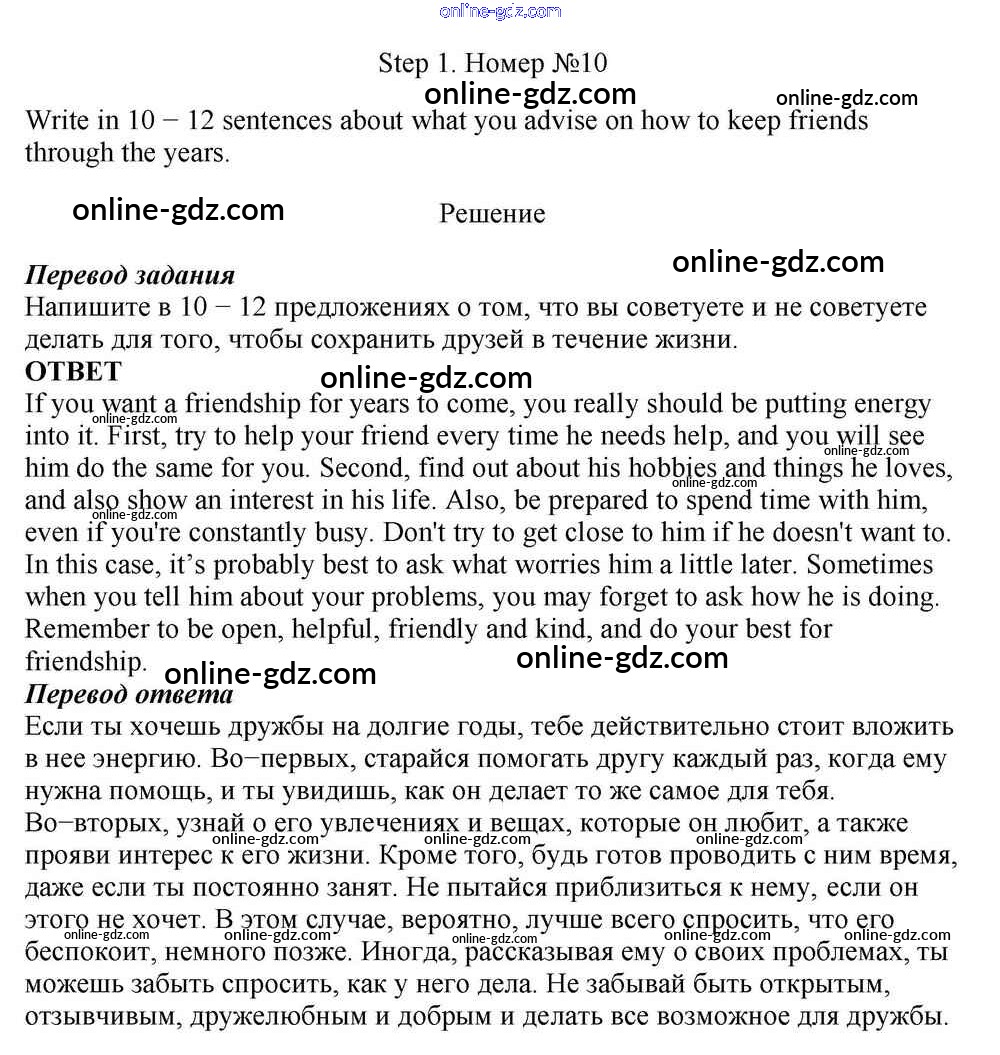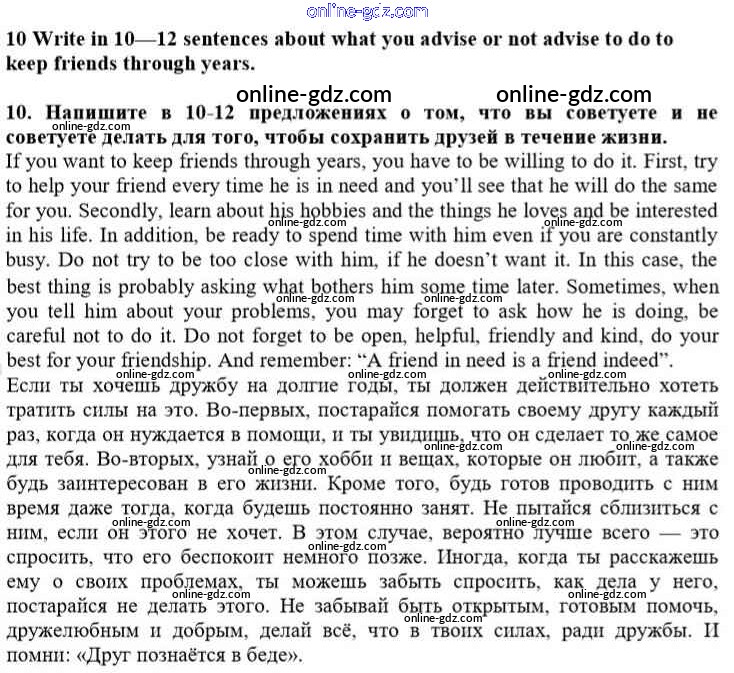 Готовые домашние задания по Английскому языку за 10 класс Учебник Афанасьева, Михеева Rainbow Базовый уровень 2016 - Step 1 Unit 2. In Harmony with Others 10