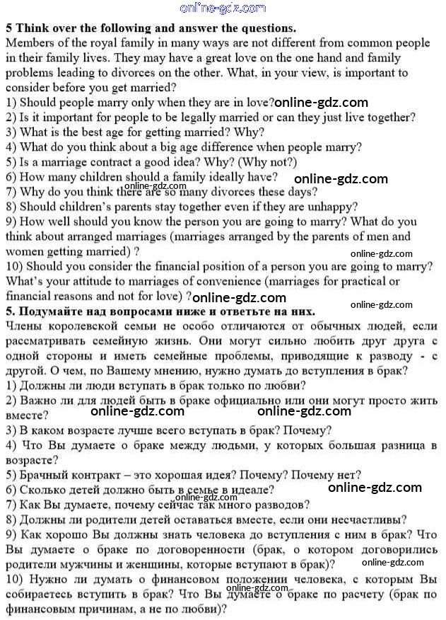 Готовые домашние задания по Английскому языку за 10 класс Учебник Афанасьева, Михеева Rainbow Базовый уровень 2016 - Step 10 Unit 2. In Harmony with Others 5