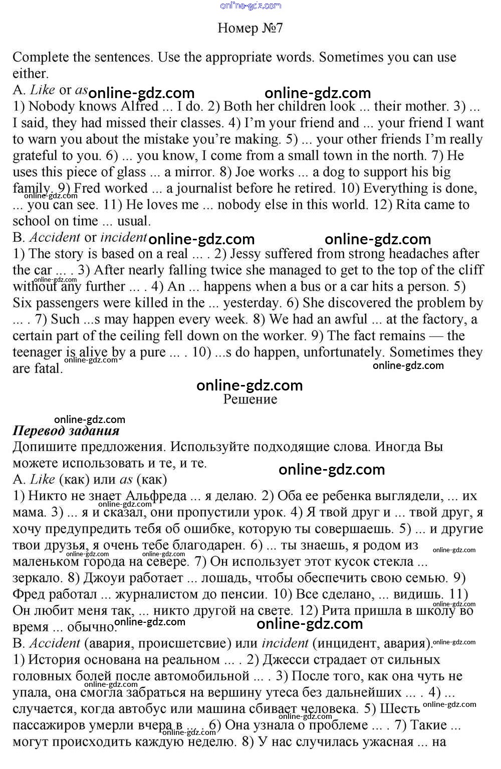 Готовые домашние задания по Английскому языку за 10 класс Учебник Афанасьева, Михеева Rainbow Базовый уровень 2016 - Step 10 Unit 2. In Harmony with Others 7