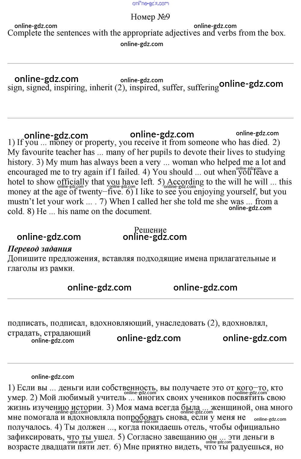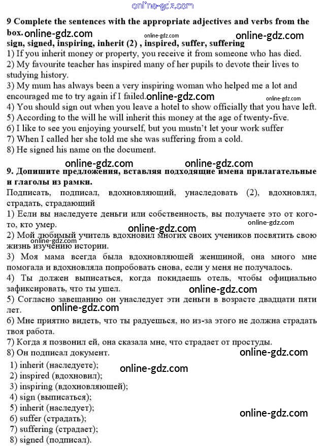 Готовые домашние задания по Английскому языку за 10 класс Учебник Афанасьева, Михеева Rainbow Базовый уровень 2016 - Step 10 Unit 2. In Harmony with Others 9
