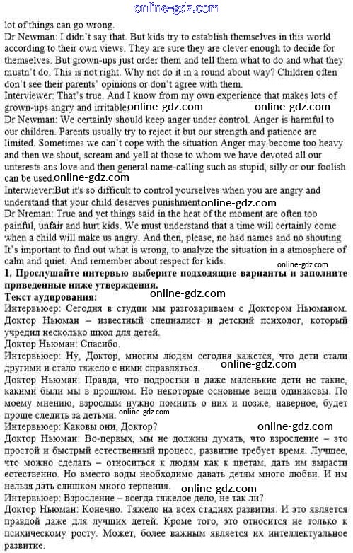 Готовые домашние задания по Английскому языку за 10 класс Учебник Афанасьева, Михеева Rainbow Базовый уровень 2016 - Step 7 Unit 2. In Harmony with Others 1