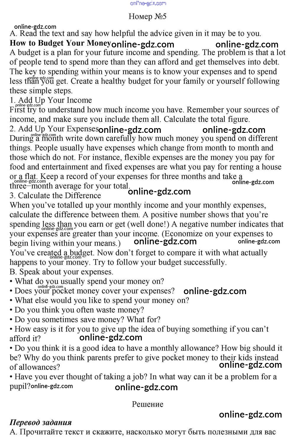Готовые домашние задания по Английскому языку за 10 класс Учебник Афанасьева, Михеева Rainbow Базовый уровень 2016 - Step 8 Unit 2. In Harmony with Others 5