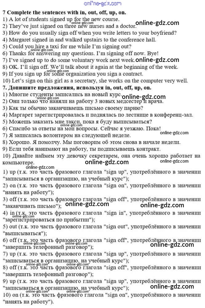 Готовые домашние задания по Английскому языку за 10 класс Учебник Афанасьева, Михеева Rainbow Базовый уровень 2016 - Step 9 Unit 2. In Harmony with Others 7