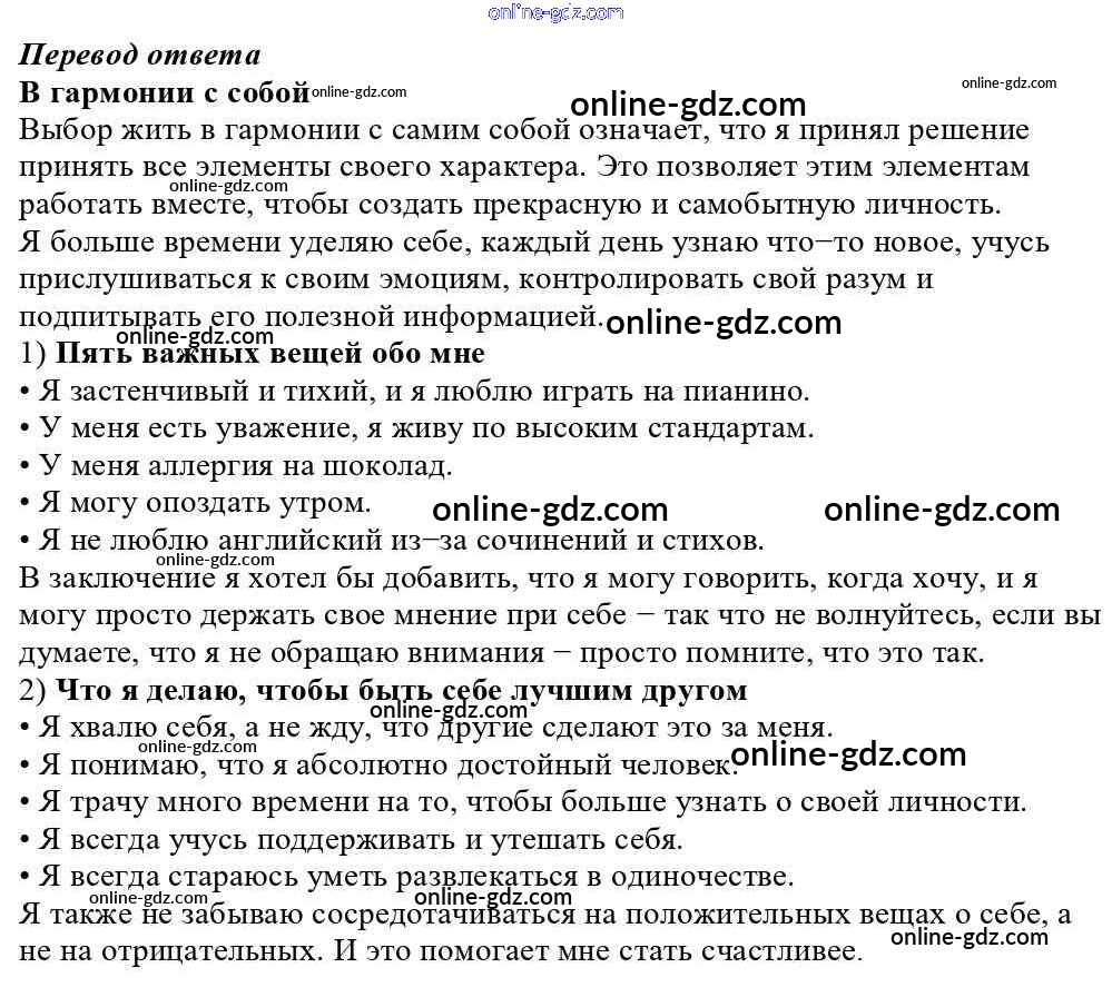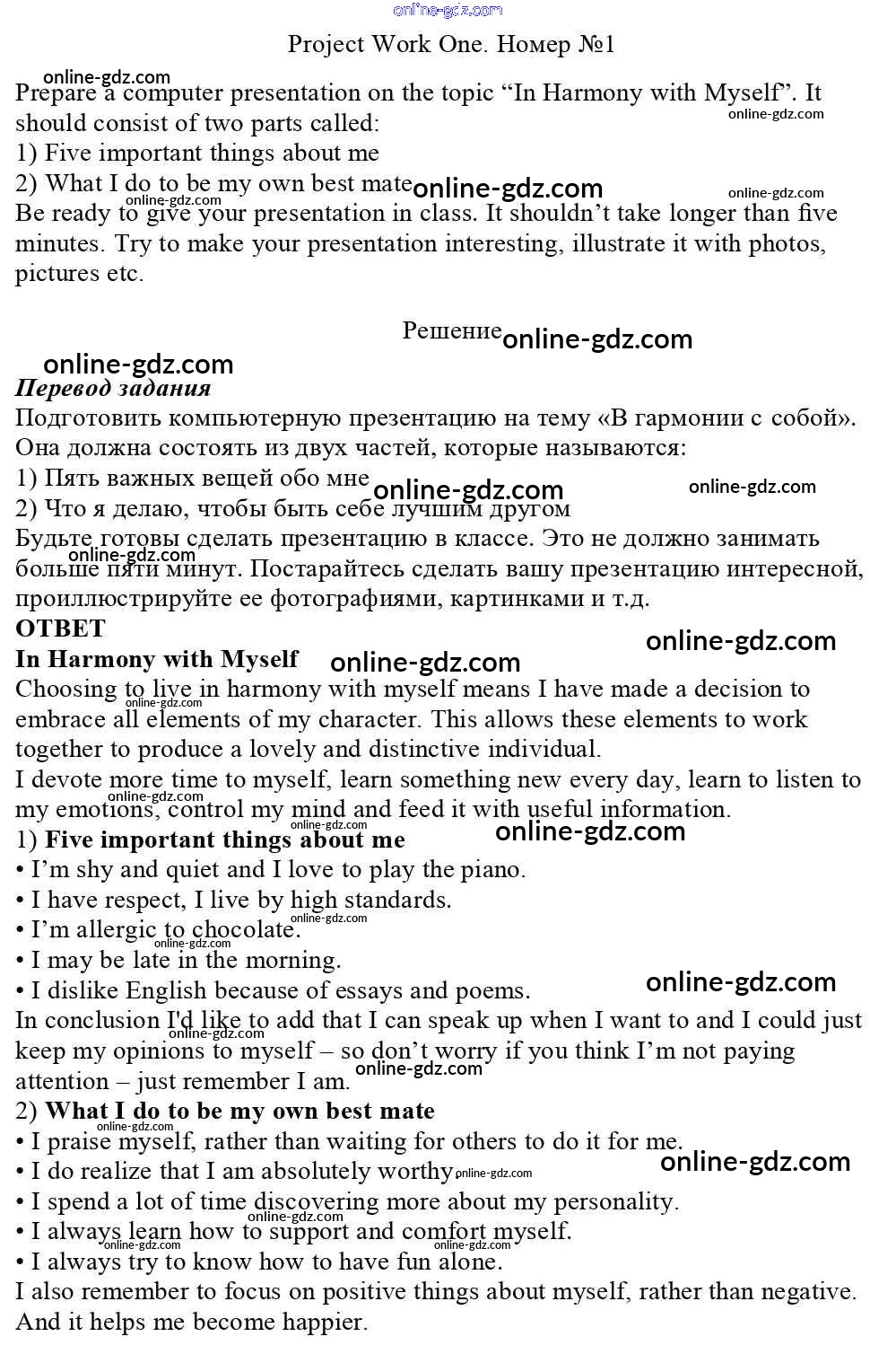 Готовые домашние задания по Английскому языку за 10 класс Учебник Афанасьева, Михеева Rainbow Базовый уровень 2016 - Project Work Unit 1. In Harmony with Yourself 1