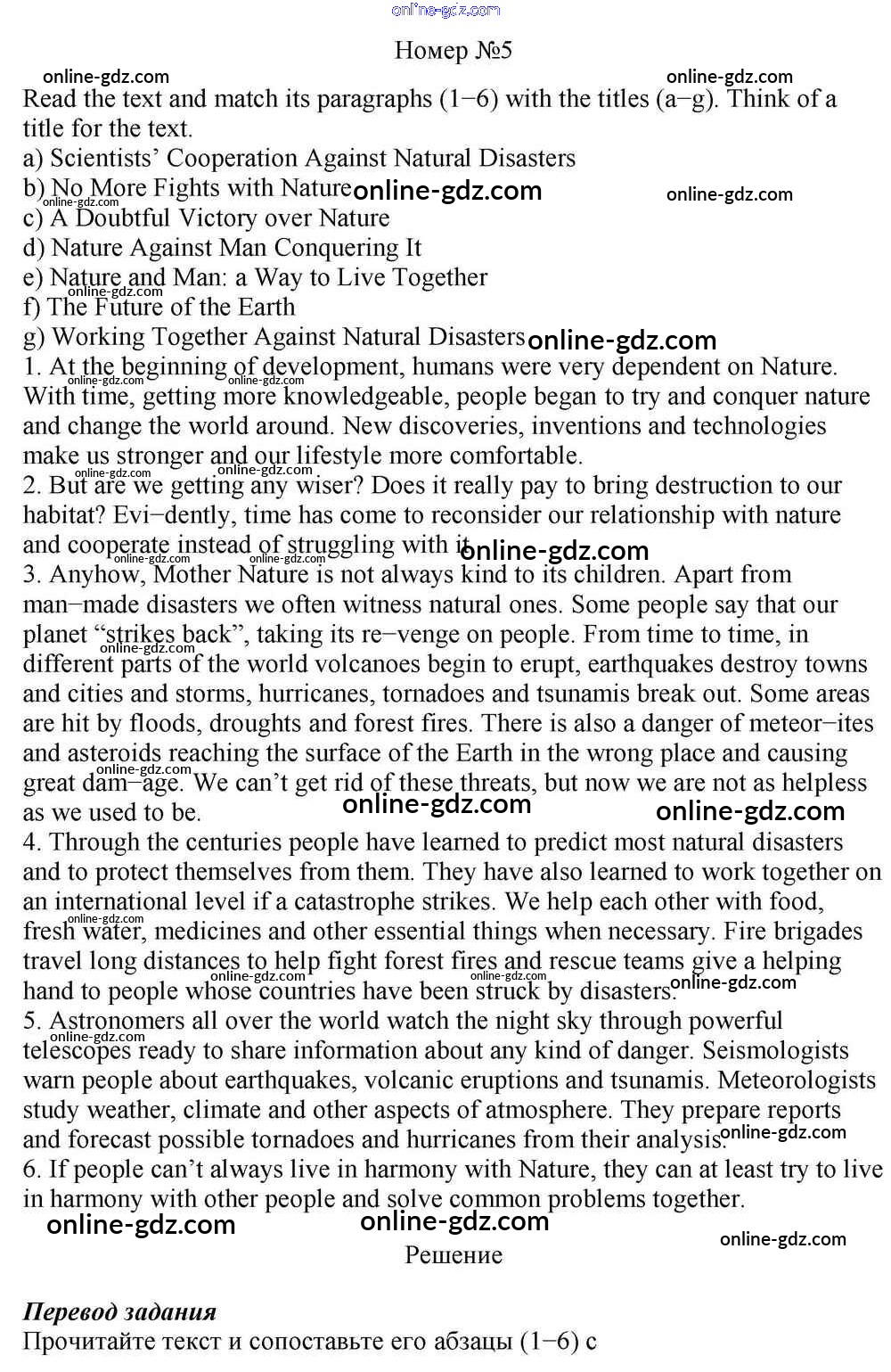 Готовые домашние задания по Английскому языку за 10 класс Учебник Афанасьева, Михеева Rainbow Базовый уровень 2016 - Step 10 Unit 3. In Harmony with Nature 5